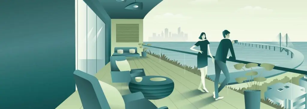 Contemporary façade with limited edition homes overlooking the Arabian Sea