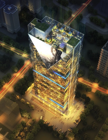 Crowned by a futuristic triangular media mesh for high-impact brand visibility